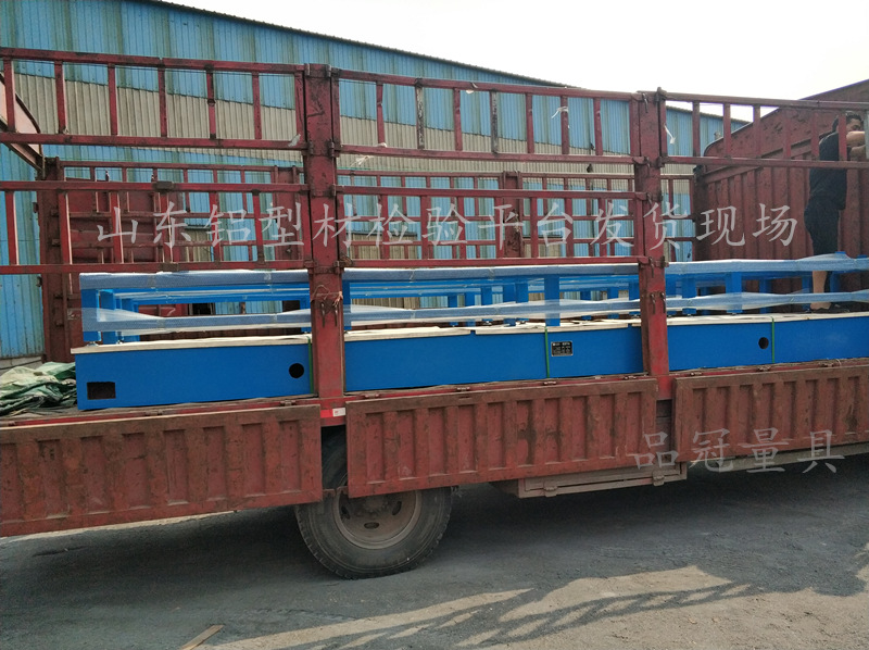 山東鋁型材檢驗平臺規(guī)格6000*600*350mm,數(shù)量3臺,已于2019.06.04日裝車發(fā)貨,預計明日上午到達,請采購科王經(jīng)理注意接貨,貨物單件重量2.5噸,總重量7.5噸。