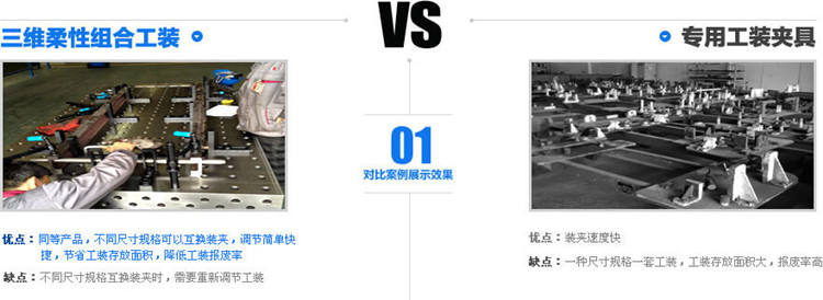 三維:代表三個方向一般夾具都是縱向和橫向沒有垂直方向。平臺大面有二個方向,四周邊可用作垂直方向的安裝,從而達(dá)到立體組合。