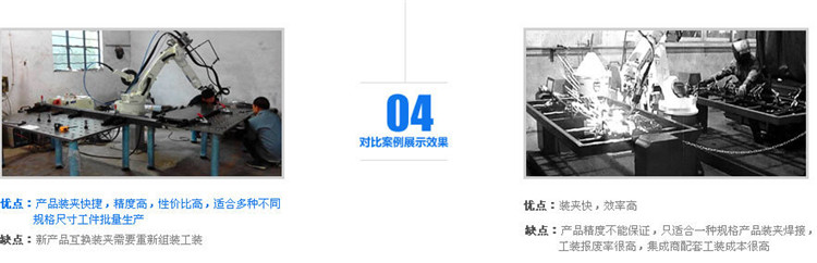 柔性:因為有上述功能整套裝備可根據(jù)產(chǎn)品的變化而變化,一套夾具就可完成幾個產(chǎn)品或幾十個產(chǎn)品的需求,從而大大的加快了產(chǎn)品的研發(fā)、試制的進(jìn)程,節(jié)省大量的人力、物力和財力(環(huán)保和低碳產(chǎn)品)。