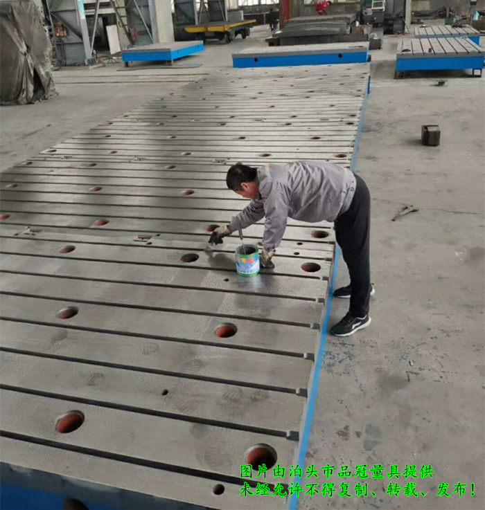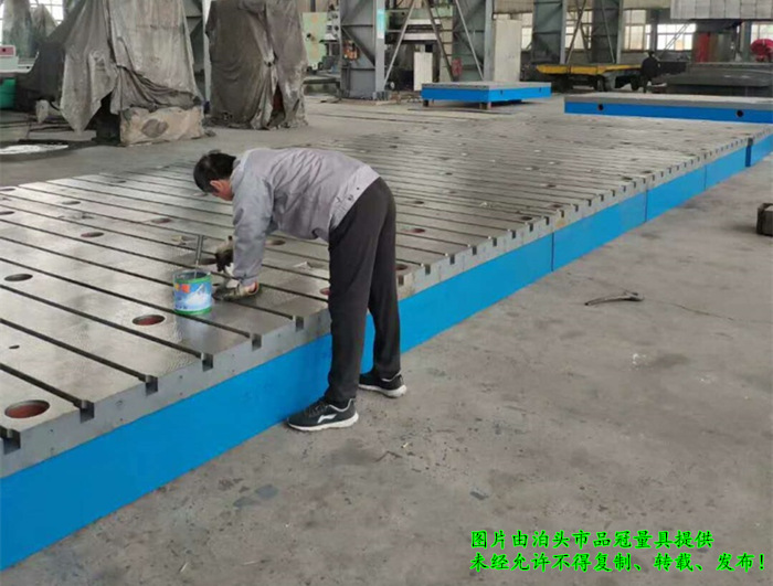 拼接裝配平臺(tái)適用于大于4000X8000規(guī)格的大型鑄鐵平板,因?yàn)閱螇K鑄鐵平板面積過大,不容易運(yùn)輸或安裝的大型鑄鐵平板。采用小規(guī)格鑄鐵平板拼接的方式來完成。這種拼接的方式對(duì)拼接平臺(tái)使用絲毫沒有影響。
